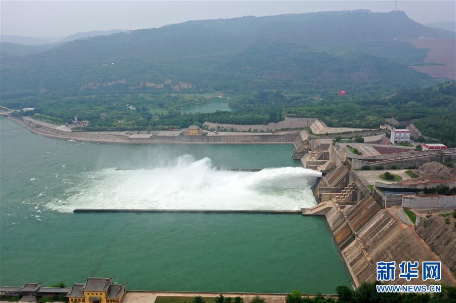 這是6月23日拍攝的黃河小浪底水利樞紐工程(無人機照片)。近日,黃河小浪底水利樞紐工程開啟洪水調(diào)度運用模式,從空中俯瞰,蔚為壯觀。新華社記者馮大鵬攝