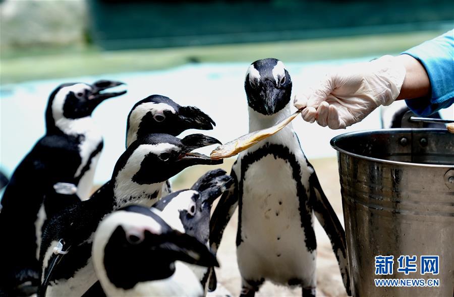 6月26日,漫步歸來的企鵝得到美食獎(jiǎng)賞。新華社記者 張建松 攝