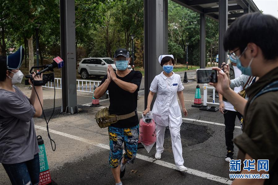 當(dāng)日上午,北京自6月11日?qǐng)?bào)告本土新冠肺炎確診病例以來首例治愈本地患者從北京地壇醫(yī)院出院。新華社記者彭子洋攝