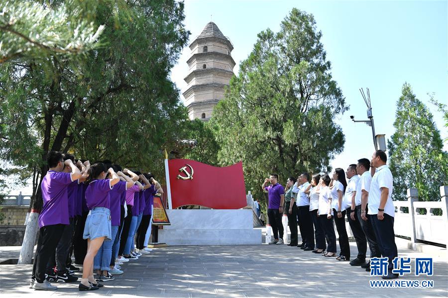 6月29日,黨員干部在延安市寶塔山重溫入黨誓詞。臨近“七一”,革命圣地延安的黨員干部紛紛來到紅色景區(qū),舉行主題黨課、現(xiàn)場教學(xué)、重溫入黨誓詞等活動。新華社記者張博文攝