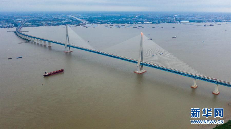滬蘇通長江公鐵大橋(6月29日攝,無人機(jī)照片)。即將于7月1日通車的滬蘇通長江公鐵大橋北起江蘇南通,南至江蘇張家港,公鐵合建跨江正橋全長5827米,為集合高速公路、客貨混線鐵路、高速鐵路的“三合一”過江通道,建成通車后將有效促進(jìn)長三角城市群跨江融合、協(xié)同發(fā)展。新華社記者李博攝