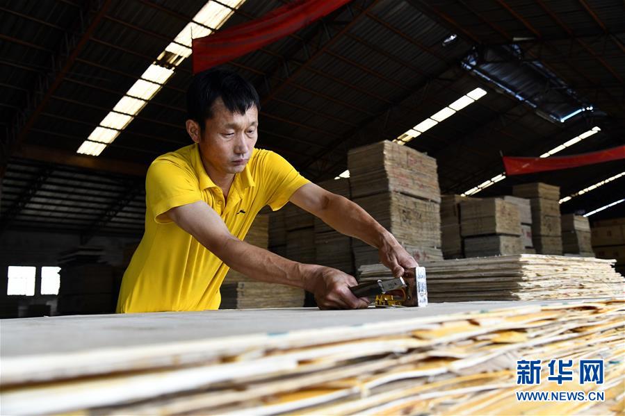 6月30日,在費(fèi)縣坤林木業(yè)有限公司,工人在整理板材原料。地處沂蒙革命老區(qū)的山東省臨沂市費(fèi)縣探沂鎮(zhèn)近年來(lái)圍繞鄉(xiāng)村振興戰(zhàn)略,謀劃“一鎮(zhèn)一業(yè)”,以木業(yè)產(chǎn)業(yè)為抓手,積極引導(dǎo)全鎮(zhèn)3136家木業(yè)企業(yè)進(jìn)行園區(qū)化、集約化、智能化發(fā)展,成為遠(yuǎn)近聞名的“木業(yè)特色小鎮(zhèn)”。2019年,該鎮(zhèn)規(guī)模以上工業(yè)總產(chǎn)值187億元,農(nóng)民人均純收入2萬(wàn)元左右,木業(yè)產(chǎn)業(yè)有力助推當(dāng)?shù)氐泥l(xiāng)村振興。新華社記者郭緒雷攝