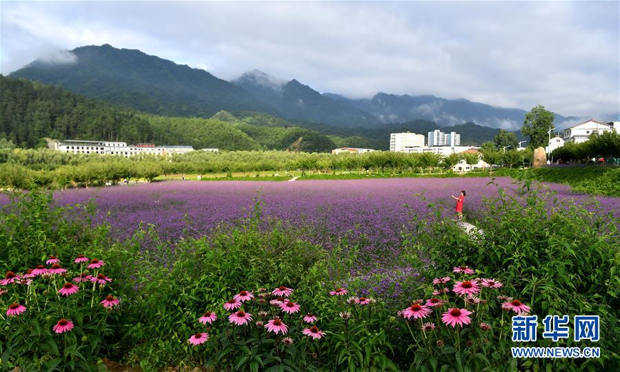 7月2日,市民在位于留壩縣城的金水灣花海拍照。近日,陜西省漢中市留壩縣金水灣花海的各類鮮花次第綻放,絢麗繽紛。新華社記者劉瀟攝