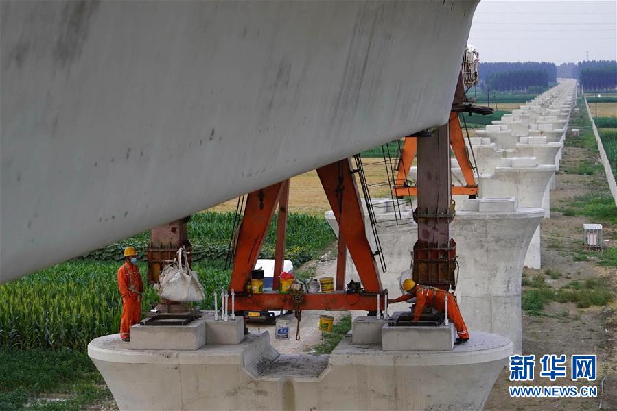 7月2日,工人在京唐城際鐵路河北省唐山市豐潤段建設工地施工。近日,京(北京)唐(唐山)城際鐵路河北省唐山段工程建設按照節(jié)點要求穩(wěn)步推進。據介紹,京唐城際鐵路是京津冀地區(qū)軌道交通網絡的重要組成部分,起點位于北京市通州區(qū)的城市副中心站,途經河北省廊坊市、天津市寶坻區(qū),終點位于河北省唐山市唐山站,線路長約148.74千米。新華社記者楊世堯攝