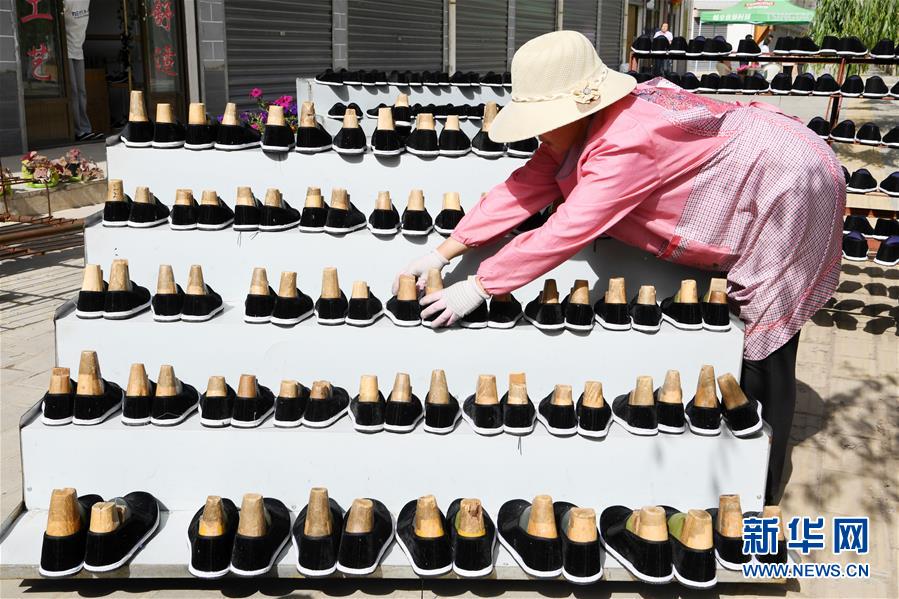 7月2日,臨夏縣百利布鞋加工農(nóng)民專業(yè)合作社員工在擺放布鞋。甘肅省臨夏回族自治州臨夏縣將布鞋加工定為重點(diǎn)扶持發(fā)展的產(chǎn)業(yè),采用“政府+公司+貧困戶”的產(chǎn)業(yè)扶貧模式,由政府主導(dǎo)、企業(yè)出資,在貧困村建設(shè)“扶貧車(chē)間”,吸納貧困群眾從事布鞋加工產(chǎn)業(yè)增加收入。截至2019年底,當(dāng)?shù)夭夹庸て髽I(yè)和加工戶遍及近百個(gè)行政村,從業(yè)人員達(dá)到4000多人,累計(jì)生產(chǎn)布鞋600多萬(wàn)雙,實(shí)現(xiàn)銷售收入2.32億元。新華社記者范培珅攝