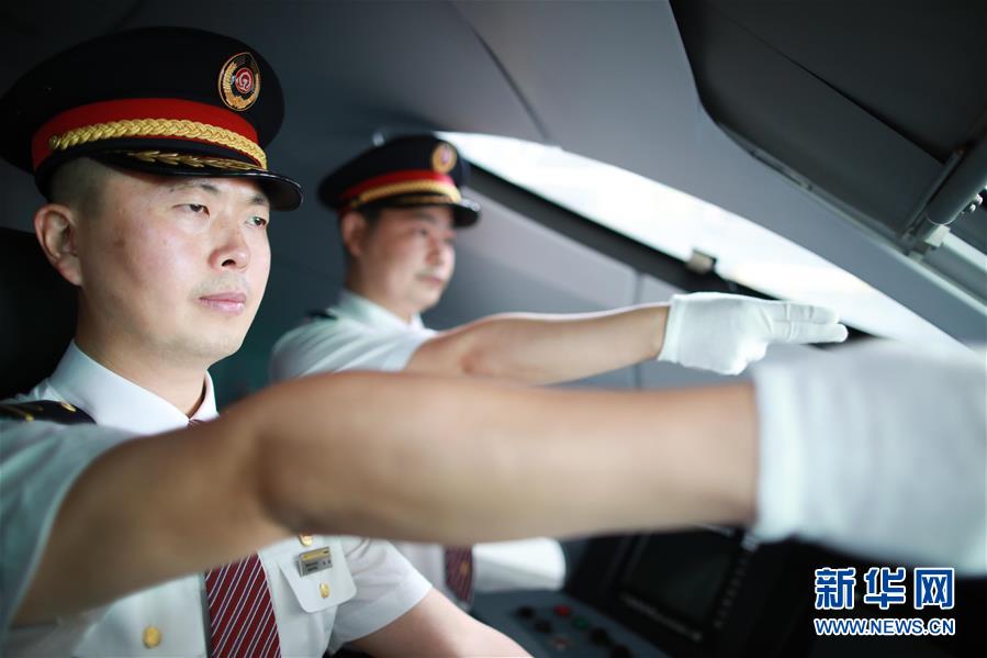 7月3日,擔(dān)任首發(fā)列車值乘工作的貴陽機務(wù)段司機在貴陽亮相。 新華社記者 劉續(xù) 攝