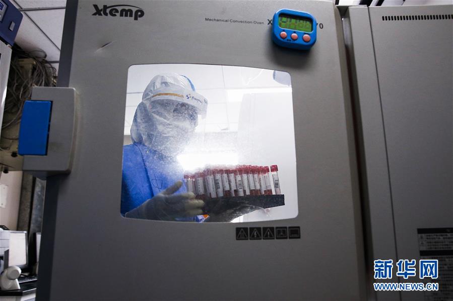 7月3日,中日友好醫(yī)院檢驗(yàn)科新冠核酸檢測(cè)實(shí)驗(yàn)室的檢驗(yàn)人員張?chǎng)稳〕鼋?jīng)過(guò)滅活的樣本。新華社記者張玉薇攝