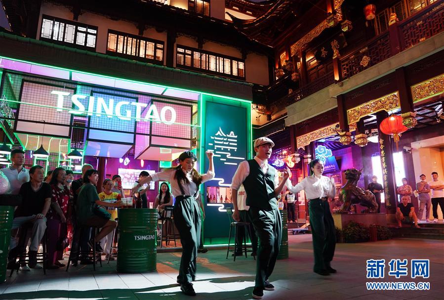7月3日,游人在上海豫園中心廣場(chǎng)觀看街舞表演。從7月第一個(gè)周末起,上海豫園原有的“豫園六點(diǎn)半”集市全面升級(jí),煥彩燈光、演藝活動(dòng)和花車(chē)集市全線更新,讓市民和游客在觀燈、觀人、觀演的沉浸式體驗(yàn)中,享受夏日特色的“食玩”樂(lè)趣。新華社記者 劉穎 攝