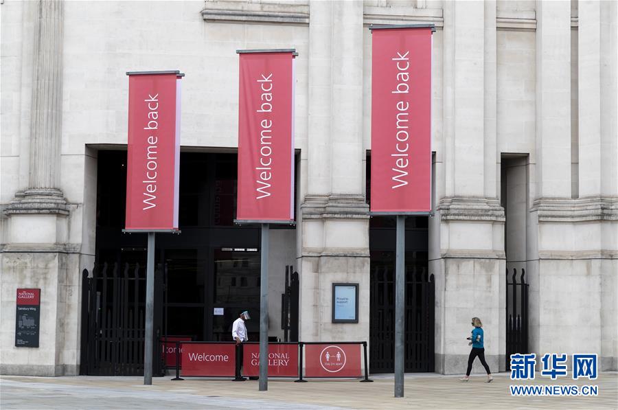 這是7月4日在英國國家美術(shù)館入口處拍攝的歡迎標(biāo)語。新華社記者韓巖攝