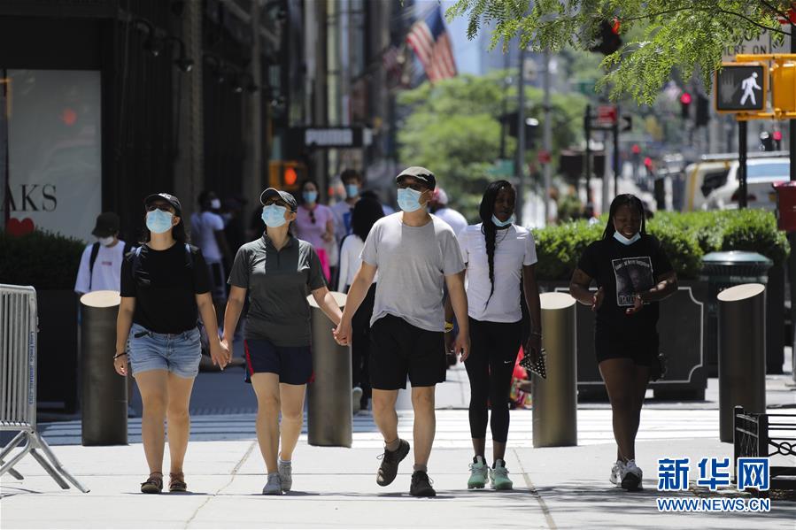 7月4日,人們戴著口罩走在美國紐約第五大道。當(dāng)日是美國獨立日,美國多地疫情仍面臨嚴(yán)峻形勢。美國約翰斯·霍普金斯大學(xué)實時統(tǒng)計數(shù)據(jù)顯示,美國累計新冠確診病例4日已超過280萬例。新華社記者王迎攝