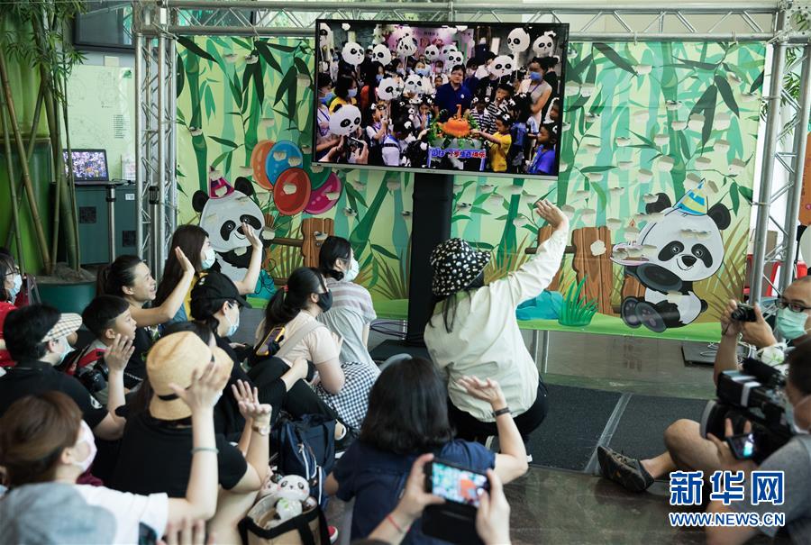 7月6日,在臺(tái)北市立動(dòng)物園,大熊貓“圓仔”的臺(tái)北粉絲和四川粉絲互致問候,共同慶?!皥A仔”生日。新華社記者金立旺攝
