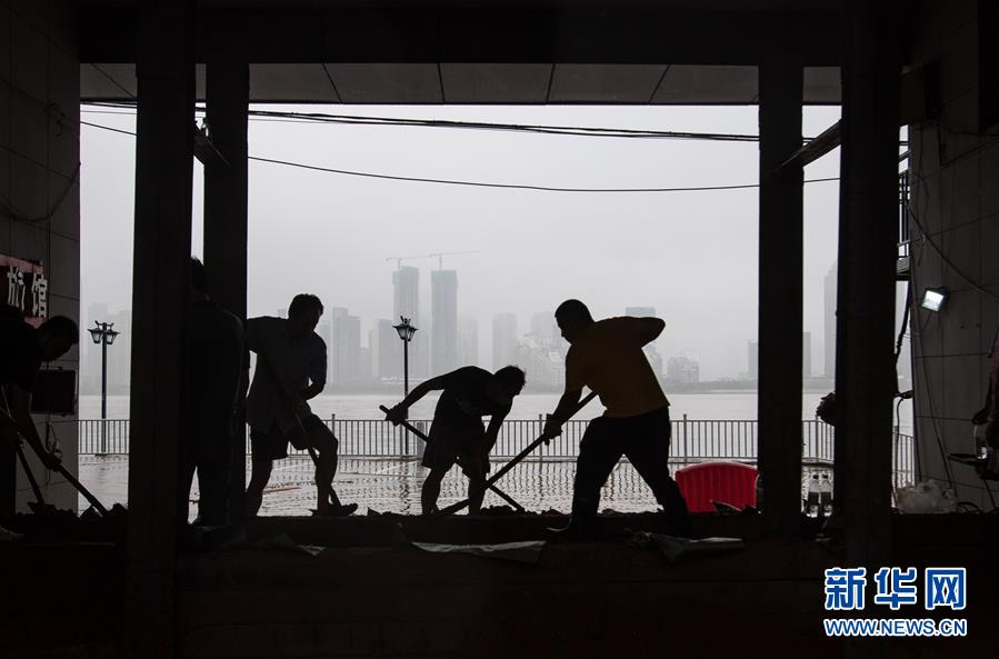 7月6日,工作人員在武漢龍王廟封堵閘口。記者6日從武漢市防汛抗旱指揮部辦公室獲悉,5日以來(lái),武漢遭暴雨襲擊,全市多處路段漬水。至6日4時(shí),長(zhǎng)江漢口站超設(shè)防水位1.79米,漢江新溝站超警戒水位0.01米。鑒于當(dāng)前水雨汛情和漬澇情況,武漢市從6日5時(shí)起,將排澇應(yīng)急響應(yīng)級(jí)別提升至Ⅱ級(jí);從6時(shí)30分起,將防汛應(yīng)急響應(yīng)級(jí)別提升至Ⅱ級(jí)。新華社記者肖藝九攝