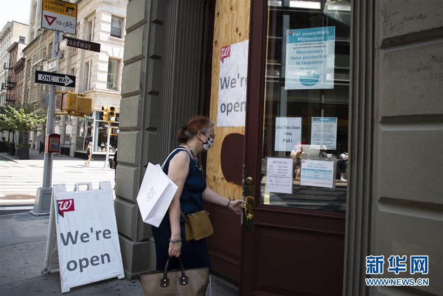7月6日,佩戴口罩的顧客進(jìn)入美國紐約的一家超市。新華社記者王迎攝