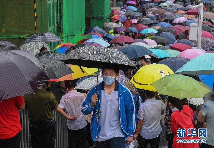 7月7日,在湖北省武漢市東湖中學考點,考生結(jié)束首場科目考試后走出考場。當日,2020年高考拉開帷幕。新華社記者程敏攝