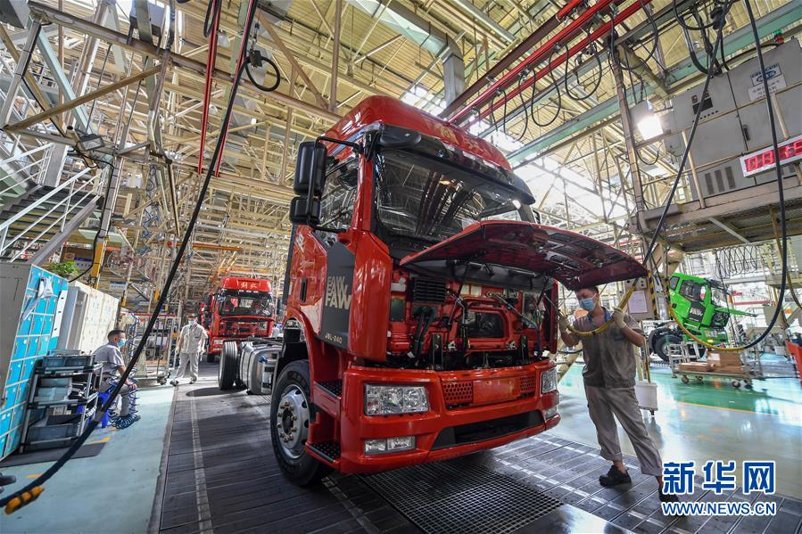 在位于長(zhǎng)春市的一汽解放總裝車(chē)間,工人在裝配車(chē)輛(6月19日攝)。中國(guó)第一汽車(chē)集團(tuán)披露,截至6月30日,集團(tuán)上半年共計(jì)生產(chǎn)整車(chē)162.23萬(wàn)輛,同比增長(zhǎng)1.5%;銷(xiāo)售整車(chē)163.09萬(wàn)輛,同比增長(zhǎng)2.3%。新華社記者張楠攝