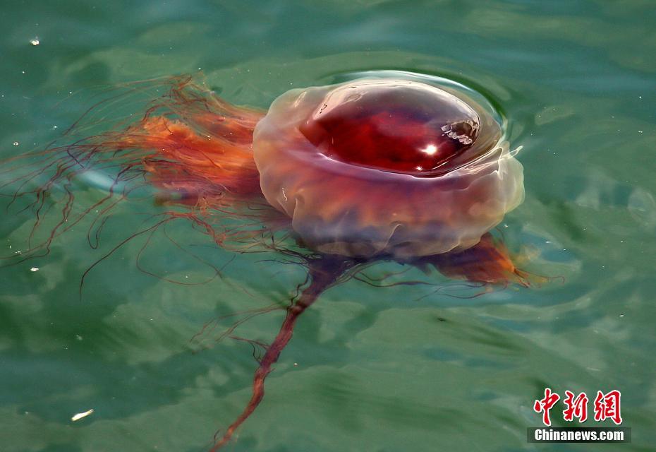 當(dāng)?shù)貢r(shí)間2020年6月25日,美國(guó)馬薩諸塞州,美國(guó)南部海岸近期出現(xiàn)大量獅鬃水母。圖片來(lái)源:視覺中國(guó)