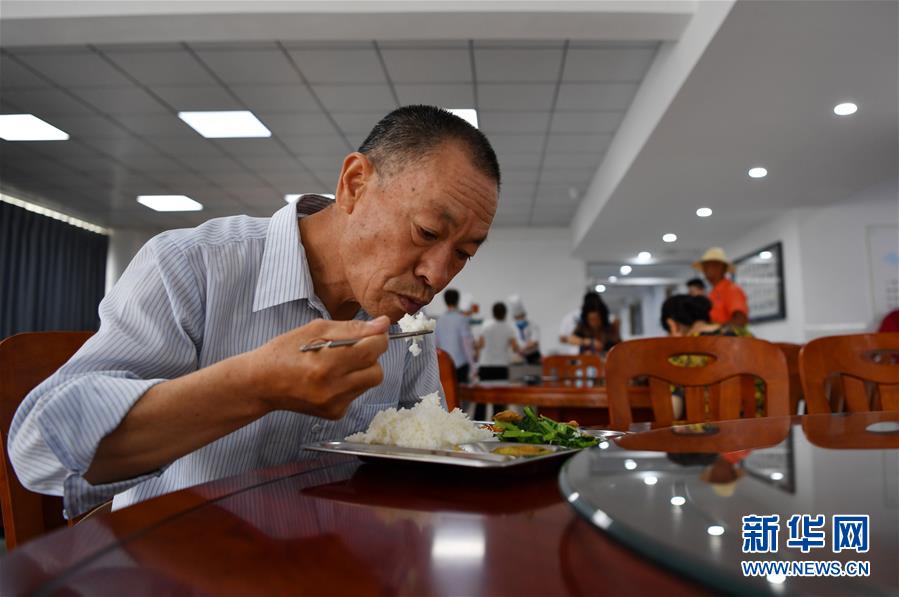 7月7日,老人在付村康養(yǎng)中心(老人家食堂)用餐。新華社記者李然攝