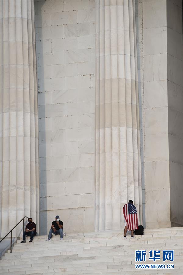 7月8日,在美國華盛頓,一名披著美國國旗的男子站在林肯紀(jì)念堂臺(tái)階上。美國約翰斯·霍普金斯大學(xué)8日發(fā)布的新冠疫情最新統(tǒng)計(jì)數(shù)據(jù)顯示,美國累計(jì)確診病例超過300萬例。數(shù)據(jù)顯示,截至美國東部時(shí)間8日11時(shí)34分(北京時(shí)間23時(shí)34分),美國累計(jì)確診病例3016515例,累計(jì)死亡病例131594例。新華社記者劉杰攝
