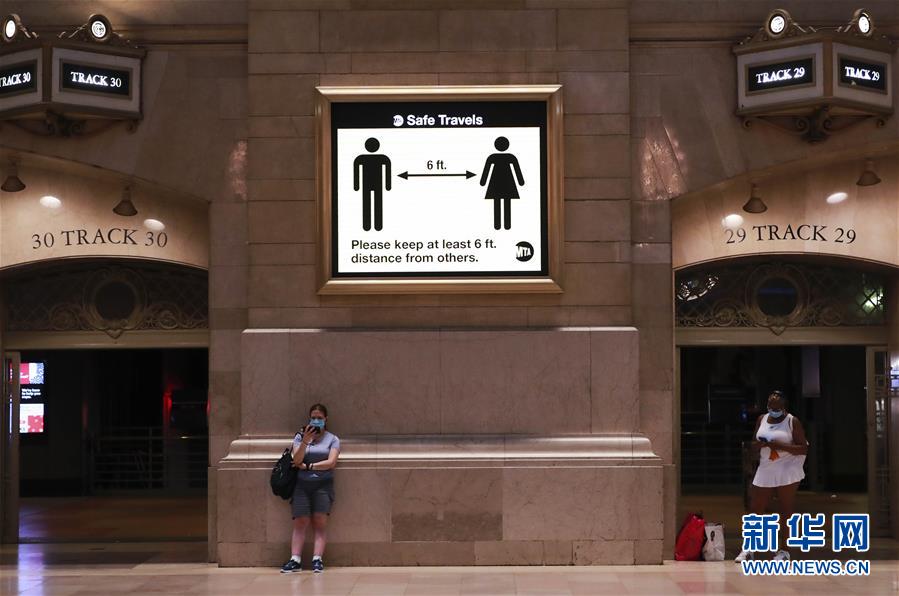 7月8日,美國紐約中央車站內(nèi)乘客稀少。美國約翰斯·霍普金斯大學(xué)8日發(fā)布的新冠疫情最新統(tǒng)計(jì)數(shù)據(jù)顯示,美國累計(jì)確診病例超過300萬例。數(shù)據(jù)顯示,截至美國東部時(shí)間8日11時(shí)34分(北京時(shí)間23時(shí)34分),美國累計(jì)確診病例3016515例,累計(jì)死亡病例131594例。新華社記者王迎攝