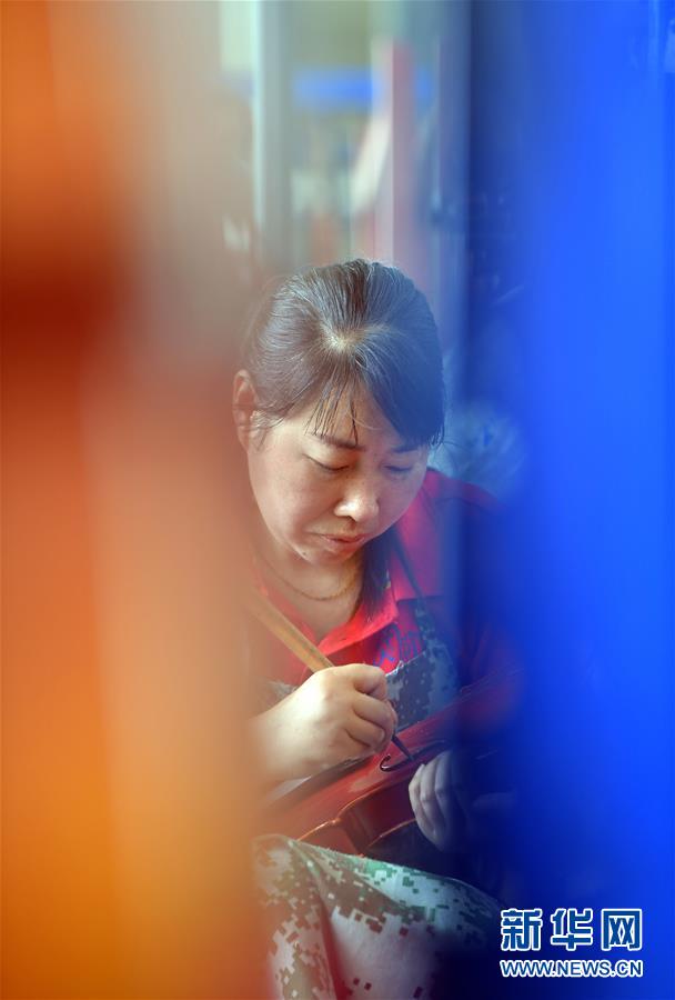 工人在河南駐馬店市確山縣提琴產(chǎn)業(yè)園提琴生產(chǎn)車間工作(7月3日攝)。新華社記者李嘉南攝