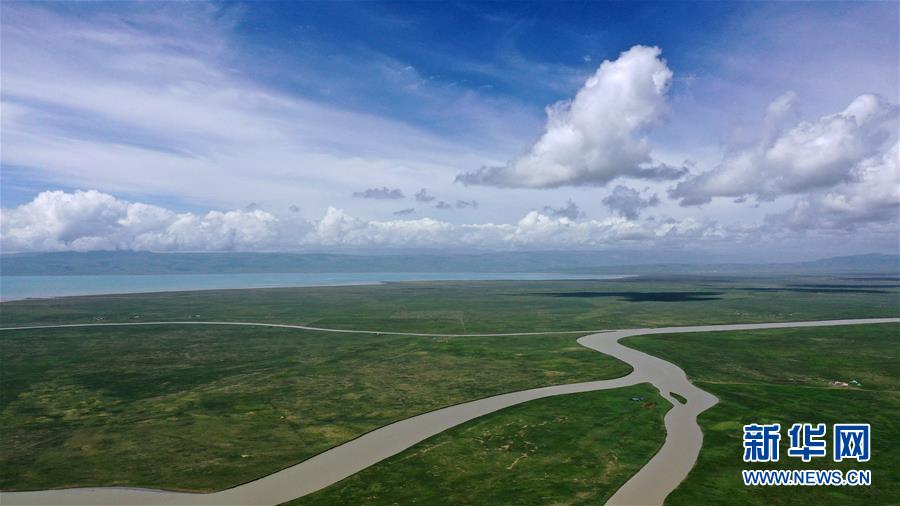 7月10日拍攝的青海湖風(fēng)光(無人機(jī)照片)。盛夏時(shí)節(jié),被譽(yù)為“中國最美湖泊”的青海湖畔景色宜人,藍(lán)天、白云、湖水與草原組成一幅壯美的畫卷。新華社記者張宏祥攝
