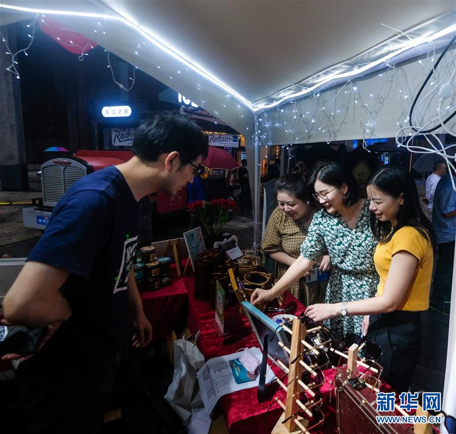 7月10日,市民在嘉年華現場的特色商品攤位上挑選飾品。新華社記者徐昱攝。
