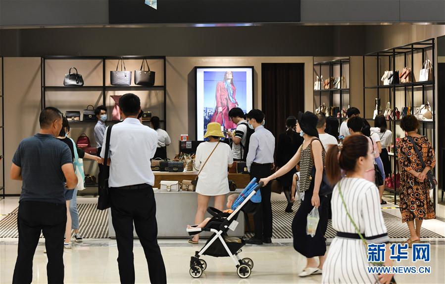 7月12日,游客在??谌赵聫V場免稅店購物。新華社記者 楊冠宇 攝