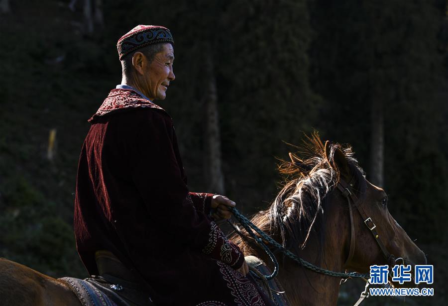 在新疆伊犁特克斯縣境內(nèi)的夏牧場里,一位牧民在放牧(6月30日攝)。新華社記者 王菲 攝