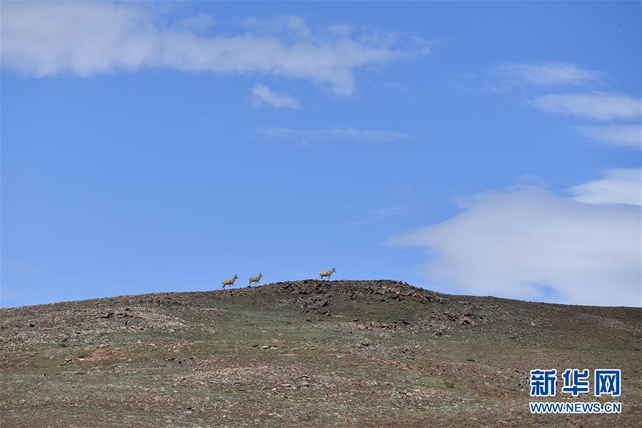 7月7日在可可西里卓乃湖區(qū)域拍攝的藏羚羊。目前正值藏羚羊產仔季。來自青海三江源、新疆阿爾金山、西藏羌塘等地的藏羚羊來到位于青海省可可西里腹地、被譽為“藏羚羊大產房”的卓乃湖區(qū)域產仔。新華社記者 薛玉斌 攝