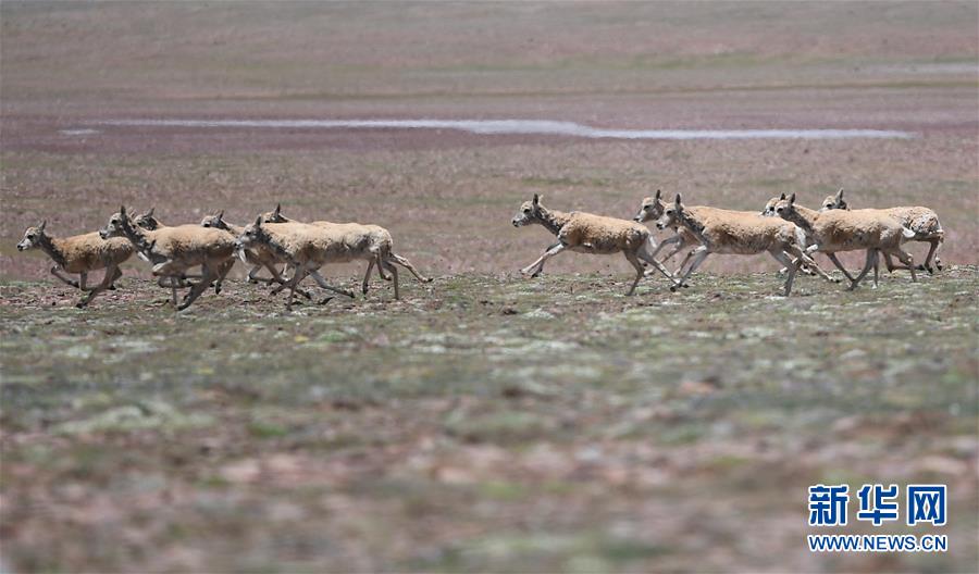 7月7日在可可西里卓乃湖區(qū)域拍攝的藏羚羊。目前正值藏羚羊產(chǎn)仔季。來自青海三江源、新疆阿爾金山、西藏羌塘等地的藏羚羊來到位于青海省可可西里腹地、被譽為“藏羚羊大產(chǎn)房”的卓乃湖區(qū)域產(chǎn)仔。新華社記者 薛玉斌 攝