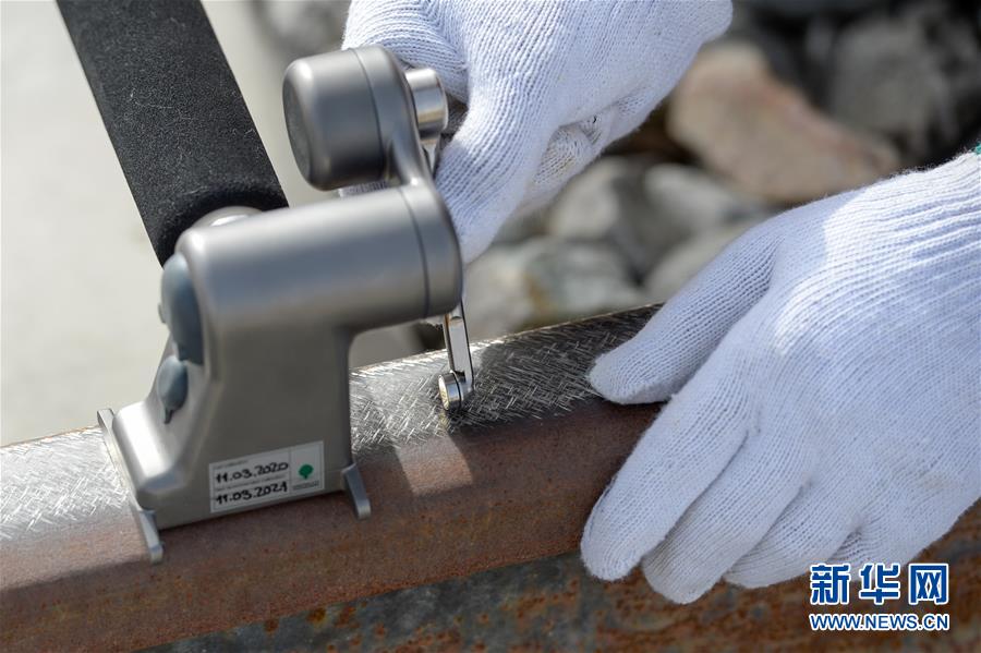 技術(shù)員用儀器進行鋼軌廓形檢測(7月14日攝)。新華社記者 丁磊 攝