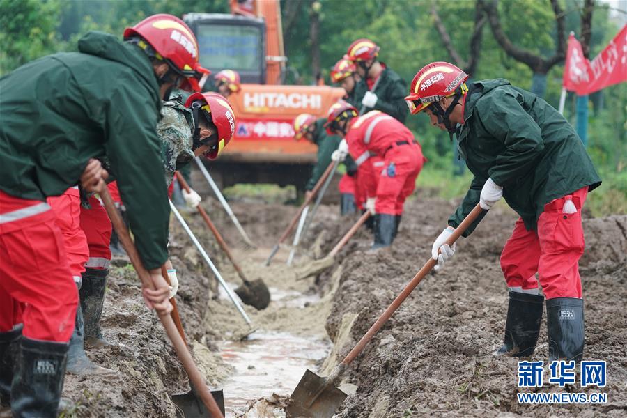 在揚中市長江大堤新壩鎮(zhèn)新寧村段,中國安能集團第二工程局常州分公司防汛前置備勤隊員在填充反濾料(7月17日攝)。捆蘆葦護邊坡、機器人進涵洞、“養(yǎng)水盆”防滲漏……在江蘇鎮(zhèn)江,當?shù)馗刹咳罕姾蛯I(yè)力量,因地制宜就地取材,老辦法搭配新技術(shù),一批險情得以消除在萌芽狀態(tài)。新華社記者季春鵬攝