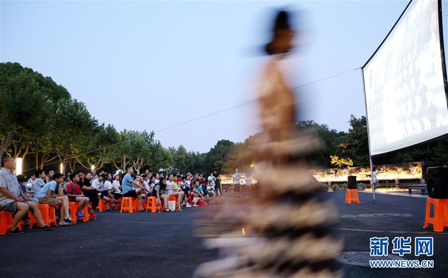 2019年7月7日,人們在上海閔行體育公園內(nèi)的露天電影院里看電影。新華社記者方喆攝