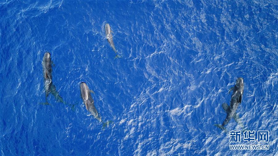 這是7月20日在南海某海域拍攝的短肢領(lǐng)航鯨(無(wú)人機(jī)照片)。新華社記者張麗蕓攝