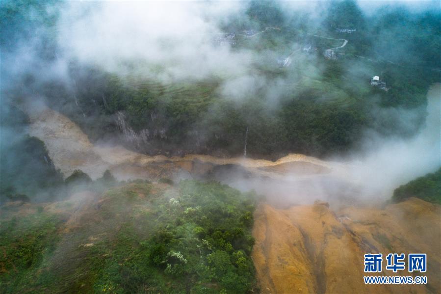 7月21日拍攝的因恩施州屯堡鄉(xiāng)馬者村山體滑坡形成的堰塞湖(無人機(jī)照片)。當(dāng)日,湖北恩施土家族苗族自治州屯堡鄉(xiāng)馬者村沙子壩滑坡體出現(xiàn)大面積滑移,形成堰塞湖,上游水位已上漲5米左右。目前,相關(guān)部門和鄉(xiāng)鎮(zhèn)正在組織形成堰塞湖后可能受影響區(qū)域的群眾轉(zhuǎn)移和交通管控工作。大龍?zhí)端畮煺诩涌祢v庫,最大限度保證廣大群眾生命財(cái)產(chǎn)安全。新華社記者肖藝九攝