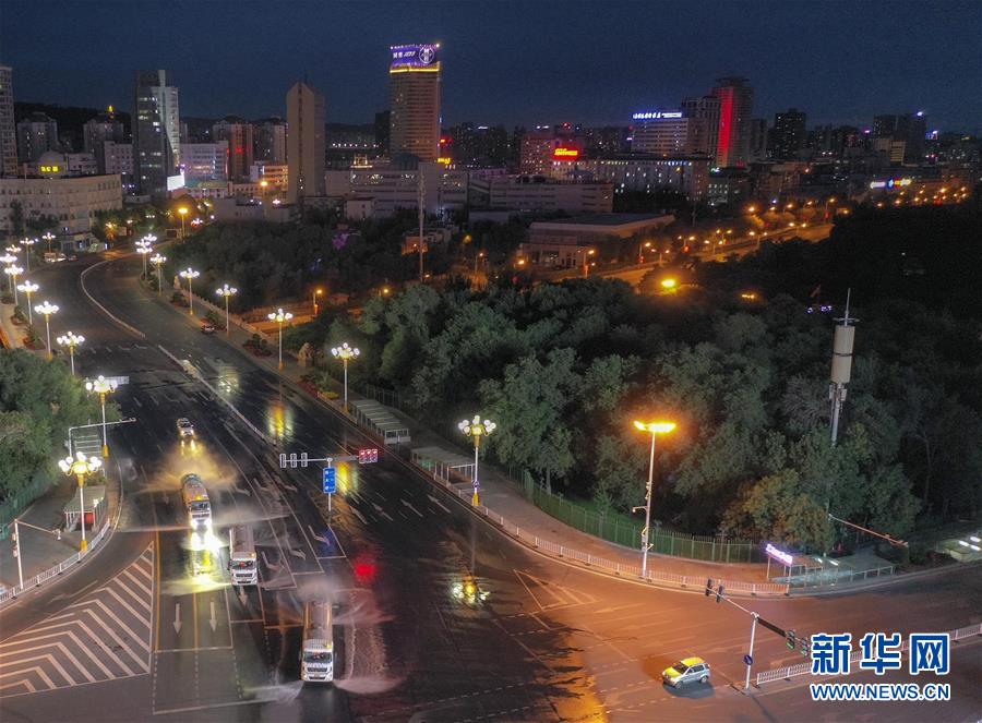 7月20日,烏魯木齊市天山區(qū)城管局清運(yùn)隊(duì)的工作車輛在市區(qū)西大橋進(jìn)行消殺作業(yè)(無人機(jī)照片)。烏魯木齊市天山區(qū)城管局自7月17日起,對天山區(qū)的主次干道76條及235條巷道進(jìn)行集中消殺。目前,烏魯木齊市對重點(diǎn)區(qū)域進(jìn)行全面消毒消殺。新華社記者趙戈攝