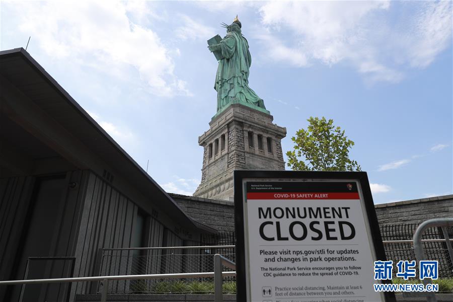 7月20日,美國紐約自由島上一處提示牌顯示自由女神像內(nèi)部的參觀仍處于暫停狀態(tài)。美國紐約市20日繼續(xù)推進(jìn)經(jīng)濟(jì)重啟計(jì)劃,宣布開始進(jìn)入解封新階段,進(jìn)一步允許部分低風(fēng)險(xiǎn)文娛活動重啟。自由女神像所在的自由島對公眾開放,但雕像內(nèi)部和博物館仍關(guān)閉。新華社記者王迎攝