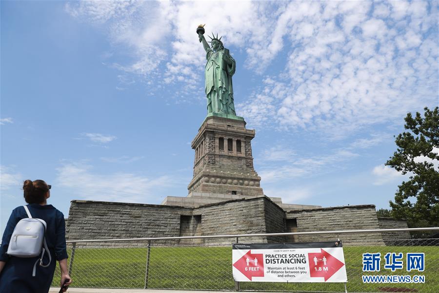 7月20日,參觀者在美國紐約自由島游覽。美國紐約市20日繼續(xù)推進經(jīng)濟重啟計劃,宣布開始進入解封新階段,進一步允許部分低風險文娛活動重啟。自由女神像所在的自由島對公眾開放,但雕像內部和博物館仍關閉。新華社記者王迎攝