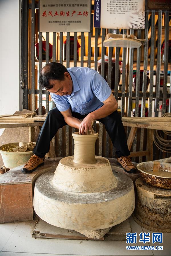 母先才在自家陶藝館里制作陶器(6月16日攝)。新華社記者 陶亮 攝
