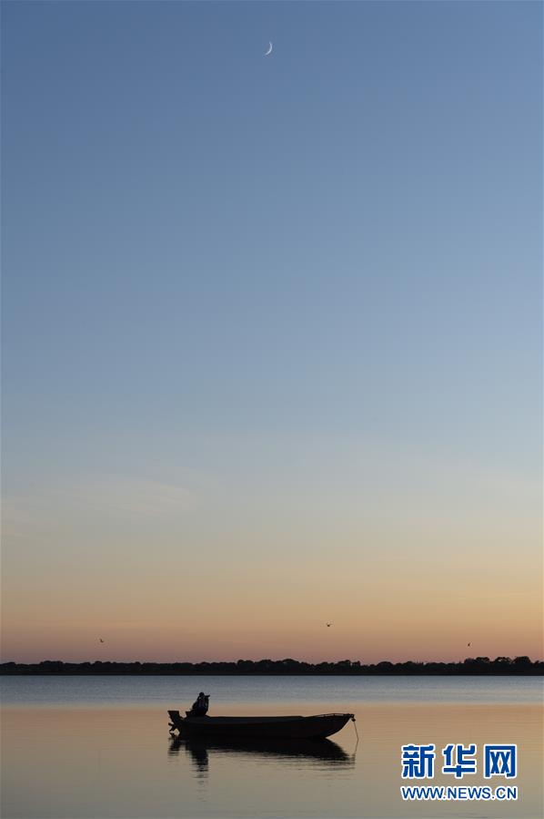 7月24日拍攝的大力加湖和停在湖面上的漁船。大力加湖位于“中國東極”黑龍江省撫遠(yuǎn)市,面積28.5平方公里,兩岸地勢(shì)低平,多濕地、草原,湖內(nèi)水產(chǎn)豐富。夏日傍晚時(shí)分,漁民捕魚歸來,美麗畫卷映入眼簾。新華社記者謝劍飛攝
