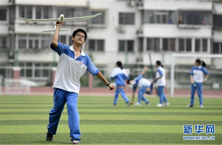7月27日,參加暑期實(shí)踐營的學(xué)生在天津中學(xué)操場上體驗(yàn)航模。新華社記者 李然 攝