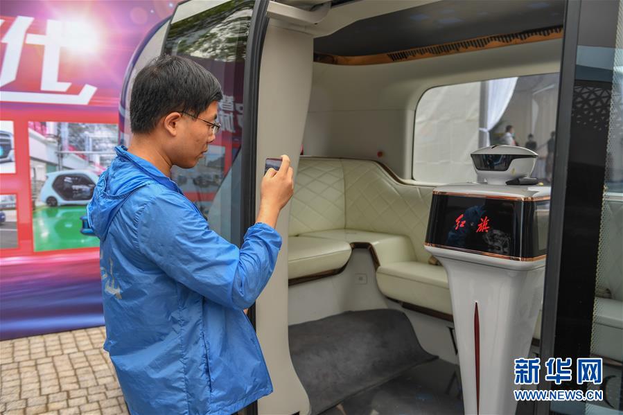 7月28日,參觀者拍攝紅旗無人駕駛概念車。