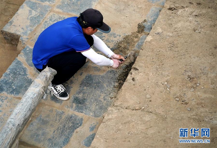 工作人員在河南省開封市州橋橋面進行清理發(fā)掘(7月27日攝)。新華社記者李安攝