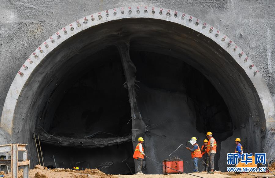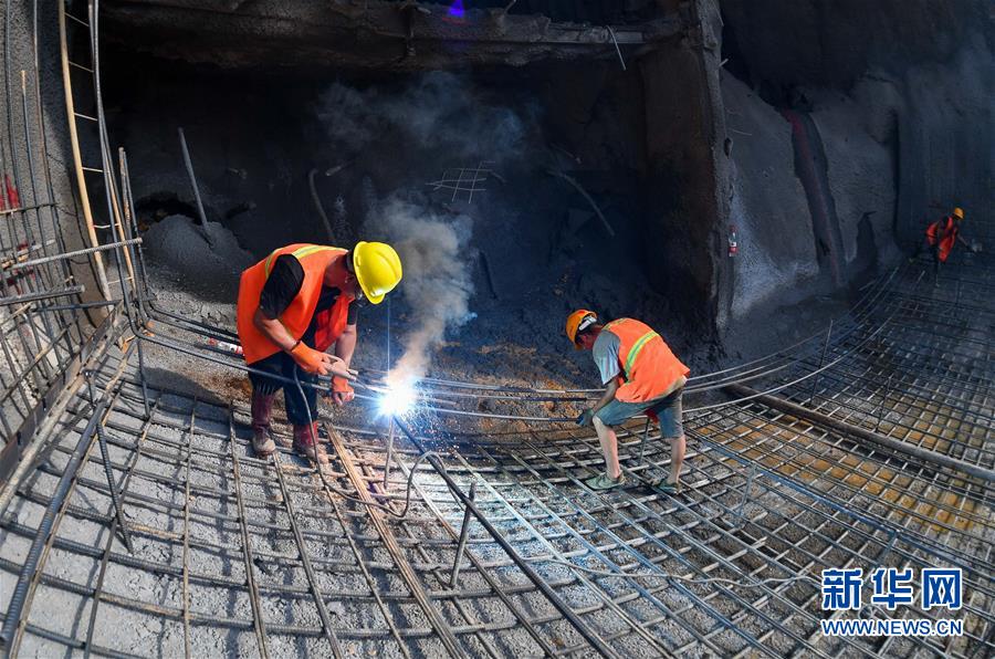 7月30日,中鐵四局施工人員在潮州東聯(lián)絡(luò)線馬頭山隧道進行仰拱鋼筋焊接。新華社記者劉大偉攝