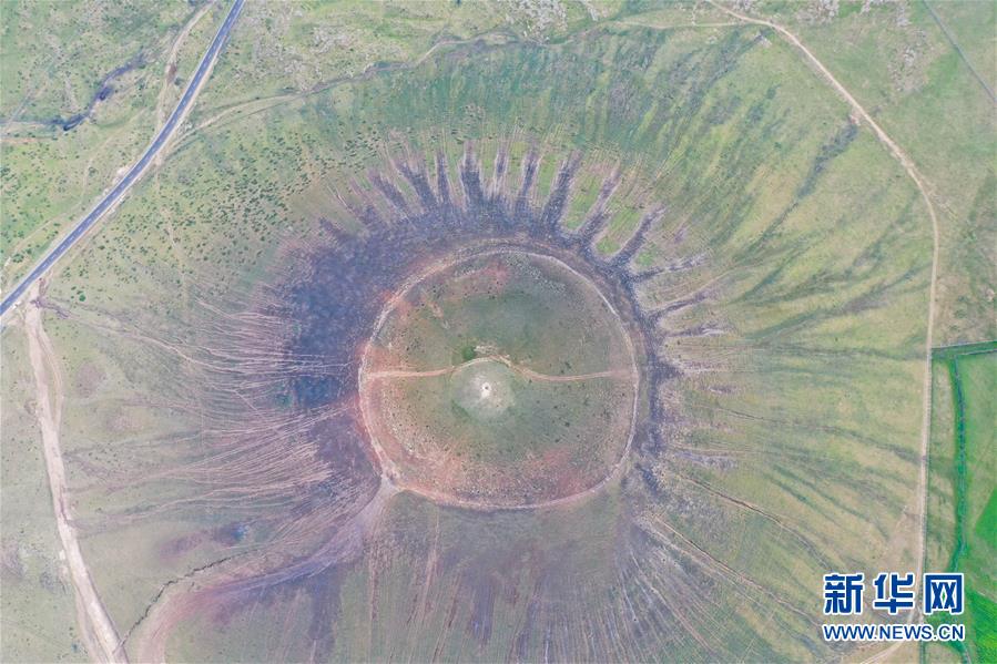 這是烏蘭哈達火山群的一處火山口(7月29日攝,無人機照片)。新華社記者徐欽攝