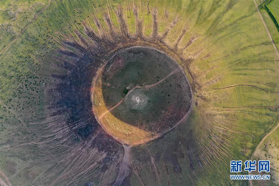 這是在烏蘭哈達(dá)火山群拍攝的一處火山口(7月29日攝,無(wú)人機(jī)照片)。新華社記者劉磊攝