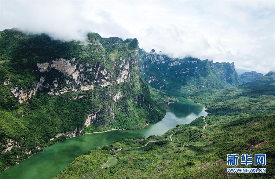 貴州北盤(pán)江大峽谷國(guó)家濕地公園風(fēng)景(無(wú)人機(jī)照片,2018年8月7日攝)。新華社記者陶亮攝