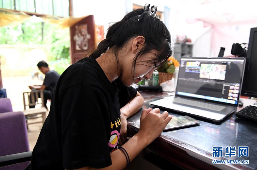 8月4日,王曉楠在剪輯視頻。新華社記者郝源攝