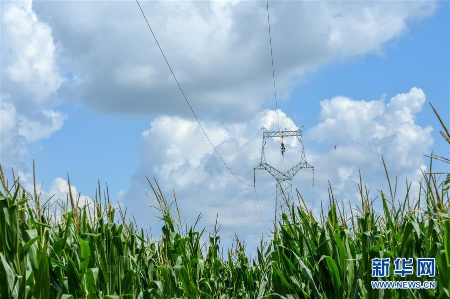 8月6日,送電工在吉林省長春市城郊的一處輸電鐵塔上施工作業(yè)。吉林省長春市連續(xù)多日出現(xiàn)高溫天氣,國網(wǎng)長春供電公司輸電運(yùn)檢中心的送電工們每天清晨開始作業(yè),不畏烈日“烤”驗(yàn),堅(jiān)守工作崗位,確保工程按計(jì)劃完成。新華社記者張楠攝