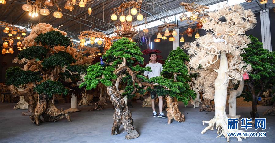 8月7日,工人在制作根雕工藝品。2017年以來(lái),廣西桂林市永福縣永安鄉(xiāng)通過(guò)幫扶返鄉(xiāng)青年創(chuàng)業(yè)的方式,建立起根雕工藝品就業(yè)扶貧車(chē)間,組織貧困群眾進(jìn)車(chē)間務(wù)工學(xué)藝,把當(dāng)?shù)刎S富的朽木和柑橘樹(shù)根枝資源利用起來(lái),加工成盆景、茶桌、吊燈等根雕工藝品,不僅幫助貧困群眾在家門(mén)口掌握一技之長(zhǎng),還讓他們?cè)诿撠氄焙髮?shí)現(xiàn)穩(wěn)定增收。新華社記者張愛(ài)林?jǐn)z